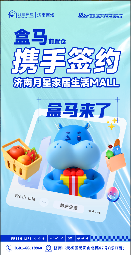 济南月星家居位于天桥区无影山北路87号,坐落于小清河北岸,是济南市超大体量的家居业态综合购物广场,作为月星集团布局山东的重点超大体量泛家居综合 MALL,汇聚了大量客流与消费需求,此次盒马前置仓的入驻,实现了新零售与家居业态的精准联动,将为商场及周边居民带来全新的消费体验。